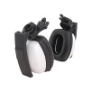 O abafador de ruídos para uso com capacete V-Gard Mark V Tipo Kit é composto por duas conchas de PEAD - Polietileno, duas espumas internas de PU - Poliuretano, garfo acoplador em PA6.6 - Poliamida com fibra e haste metálica em aço mola (somente na parte interna da haste), e atenuação de 14dB NRRsf. Confortável, apresenta excelente vedação e máxima proteção ao usuário. O design do encaixe da concha na haste proporciona giro de 360° da concha, possibilitando melhor ajuste e conforto.