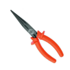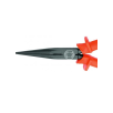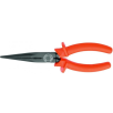 Corpo em aço Gedore-Vanadium e empunhadura em polímero antichamas na cor laranja padrão Gedore. Acabamento escurecido. Empunhadura ergonômica e antideslizante, com abas protetoras arredondadas para maior conforto e segurança. Produzida por injeção, propiciando isolação até 1000 V, conforme norma NBR 9699, submetida à ensaios de: impacto, tensão elétrica, aderência, inflamabilidade e pressão/penetração. Utilizar este Alicate isolado, em tensão máxima de 1000 V em corrente alternada e 1500 V em corrente contínua, conforme norma NBR 9699. Atende com segurança a norma regulamentadora NR 10 - Segurança em Instalações e Serviços em Eletricidade, possui certificado de isolação. Tratamento térmico total e corte temperado por indução com dureza de 58 - 65 HRC. Alicate de bico semirredondo, longo e reto, com dentes finos e em paralelo, que permite cortar, puxar, segurar e dobrar fios. Indicado para corte de arame com dureza média, diâmetro máximo de Ø 1,6 mm e com resistência à tração 1600 N/mm². Indicado para trabalhar em montagens e reparos eletroeletrônicos. Fornecido em embalagem autosserviço.