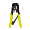 Alicate crimpador de cabos RJ11, Flex super econômico, com laminas de inox , corta e desencapa cabos elétricos , cabo ergonômico, com plástico especial, que permite mais proteção e melhor aderência, corpo em aço fosfatado, próprio para uso profissional e domestico em instalações elétricas e telefônicas.