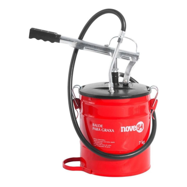 Acompanha: 1 balde para graxa, 1 mangueira para graxa, 1 extensão rígida, 1 bico e 1 alavanca montada.