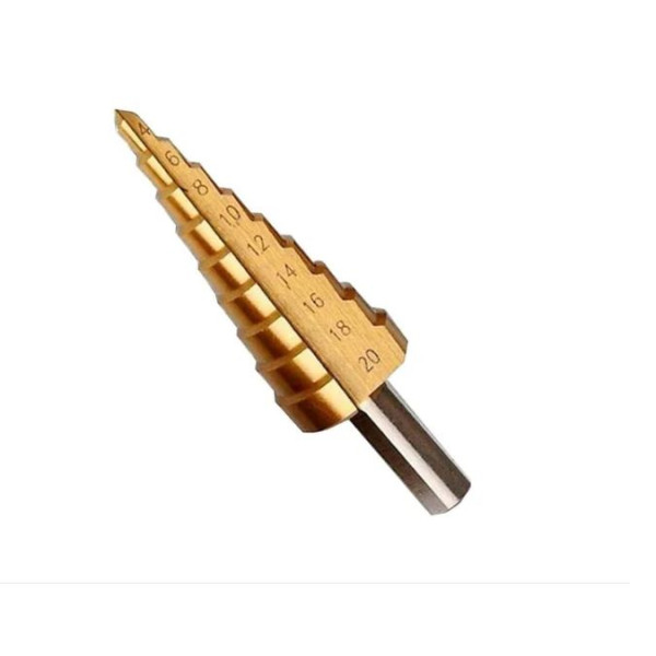 A Broca Escalonada 9 Diâmetros de furo 4-20mm Rocast é ideal para fazer furos em placas de ferro, alumínio, painéis de pvc entre outros materiais.