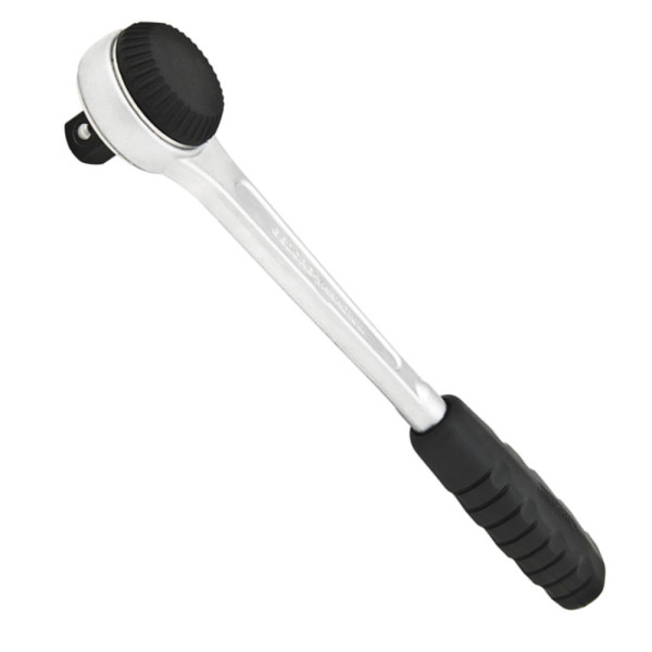 Corpo em aço Gedore-Vanadium, cabo e cabeça cogumelo em polímero na cor preta padrão Gedore. Corpo com acabamento niquelado e cromado, com encaixe escurecido. Para soquetes e acessórios manuais com encaixe quadrado 12,7 mm (1/2”)