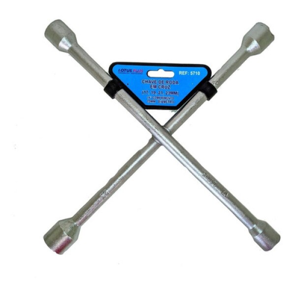 Chave de Roda em Cruz em Chrome Vanadium, 100% endurecido e temperado, cromada fosca, painel em baixo relevo.