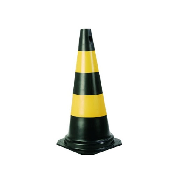 O Cone Plastcor de sinalização PVC Preto/Amarelo 75cm, trata-se de um produto de uso temporário, utilizado para sinalização de trânsito, estacionamentos, obras, práticas esportivas, entre outros. É utilizado para sinalização e segurança injetado em polipropileno numa peça única em duas cores, preto e amarelo ou laranja e branco, é um material leve, ele é pratico e possui resistência a fungos e bactérias e também é resistente a fatores como sol, chuvas e além disso, esse material tem uma ótima durabilidade e em casos de incêndios o mesmo evita propagações.