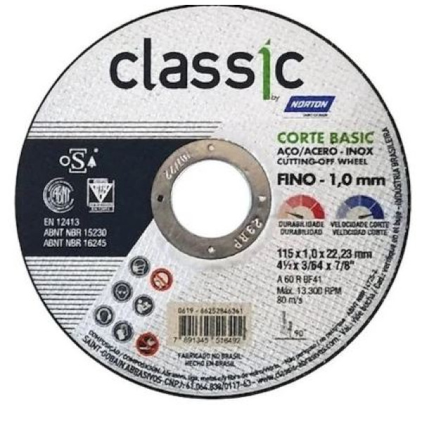Espessura do disco de corte:1,0 mm - +/- 3/64"