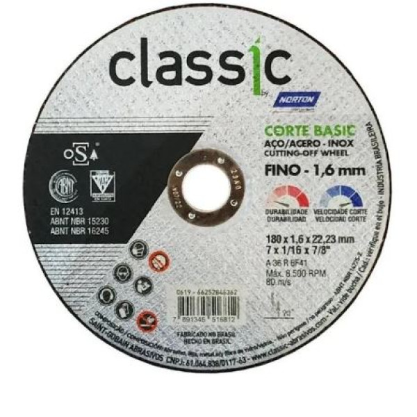 Indicado para serralheiros e demais profissionais em geral. Ideal para cortar aço carbono e aço inox. Não utilizar em serra mármore.