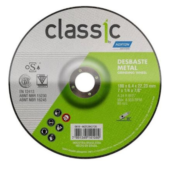 Diâmetro do furo do disco de desbaste:22,23 mm - 7/8"