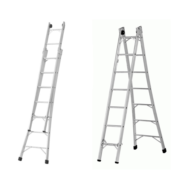 - A Escada extensiva em alumínio, profissional 3 em 1 - 2 X 6 Degraus - feita em perfis de 100% alumínio é pratica e possui um suave sistema de articulação para estender e fechar, além de ser equipada com sapatas antiderrapantes, trazendo maior segurança ao usuário.