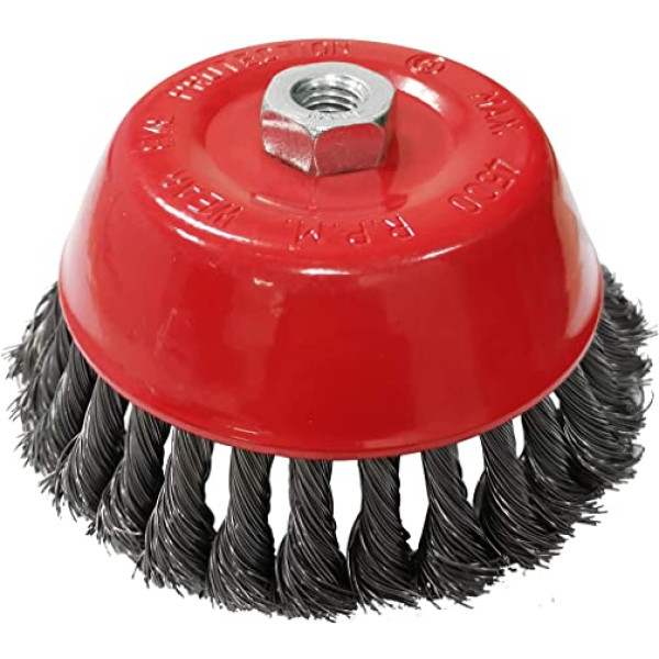 Escova circular de aço carbono temperado, tipo copo, com tufos de filamentos ondulados, fio de 0,5 mm de espessura, encaixe da rosca M14, para remoção de ferrugem, solda, rebarba, tinta, etc, proporciona maior rendimento