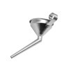 Funil produzido com chapa de aço carbono, com alça soldada a ponto sem rebarba e tratamento de galvanoplastia, que é o banho estético que ajuda prevenir pequenas oxidações no funil para óleo lubrificante.