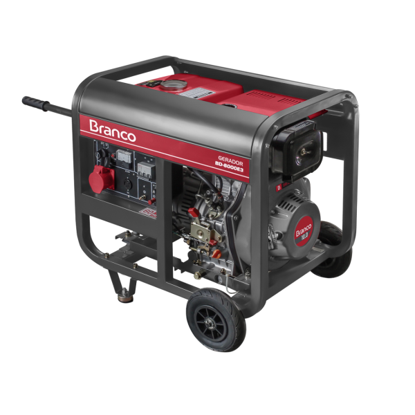 Com motor de 13.0 CV e autonomia de 5 horas (considerando 50% de carga), o Gerador trifásico BD-8000 E3 possuI quadro mais robusto e capas laterais que protegem o tanque de combustível, além de contarem com bomba e bicos injetores tipo caneta e permitirem acoplamento de sistema ATS. O equipamento possui rodas para transporte e é indicado para estufas de fumo, ordenhas leiteiras, locadoras de equipamentos, construção civíl e residências. Versão com tensão de saída principal de 380V.