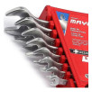 Também conhecida como chaves de boca, 6 a 22 mm vem com 8 peças. Possui bocas com menor espessura possibilitando acesso a lugares difíceis, produzida em aço cromo vanádio com acabamentos niquelado, cabeças com menor espessura, possibilitando acesso a lugares restritos