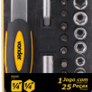 1 Jogo de soquetes, composto por suporte plástico com 25 peças, sendo: