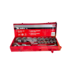 Com 20 peças no total o jogo é composto de soquetes 26 soquetes que vão de 19 a 50 milímetros.