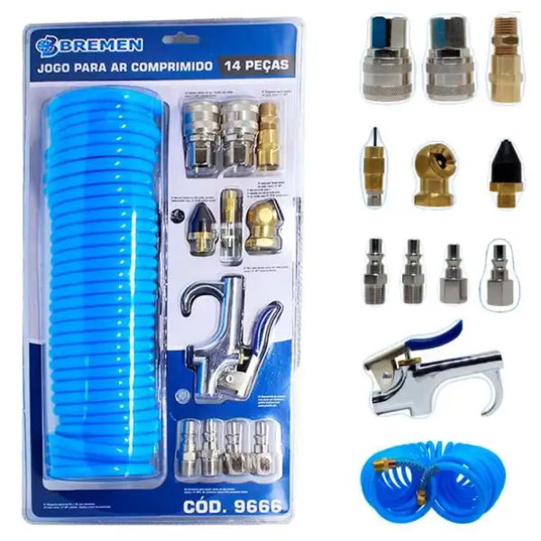 1 Mangueira espiral em PU + PE com conectores em latão (rosca 1/4 POL NPT, externa-macho) e molas bicromatizadas
