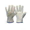Luva de proteção, com a palma confeccionada em vaqueta integral, espessura 8/10 linhas; e o dorso em raspa, espessura 11/13 linhas, modelo petroleira, com reforço interno na palma, tira de reforço externo entre os dedos polegar e indicador, acabamento do punho em viés, confeccionada com linha de nylon. Possui elástico de ajuste no dorso. Indicada para proteção das mãos em serviços gerais que apresentem riscos de natureza leve, onde haja contato com materiais abrasivos, escoriantes, cortantes e perfurantes, principalmente na parte da palma.