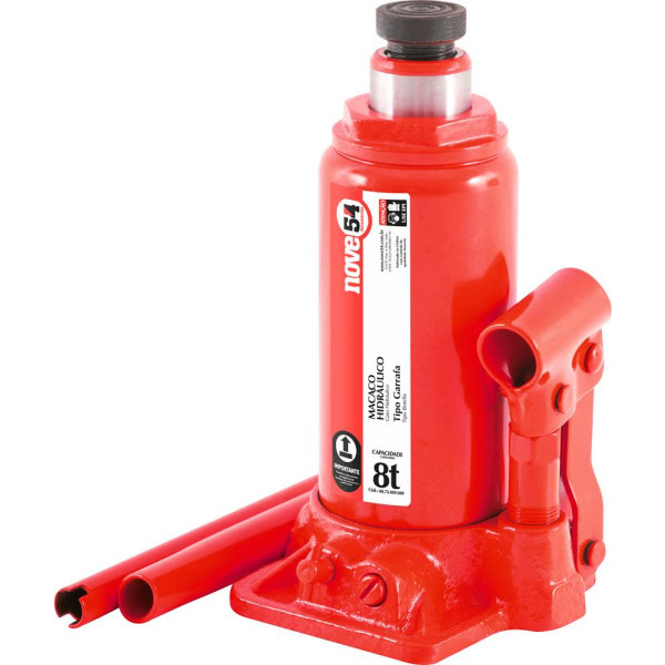 Indicado para elevação de veículos ou cargas de acordo com sua capacidade. Usar, armazenar e transportar somente na posição vertical para evitar vazamento de óleo. Quantidade total de óleo hidráulico: 127,5 ml. Atenção: o operador jamais deve ficar embaixo de um veículo elevado/suspenso por macaco hidráulico, sem o posicionamento de cavaletes de apoio. Risco iminente de acidente grave.