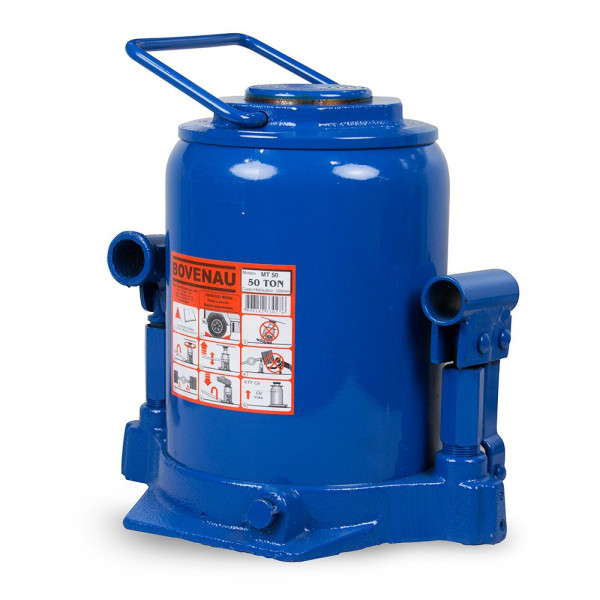 Macaco hidráulico tipo garrafa. Utilizado para elevação de veículos para facilitar a troca de pneus de caminhonetes, caminhões, carretas de linha leve e pesada. Pode ser usado na horizontal desde que a catraca ou a bomba pneumática esteja na posição inferior.