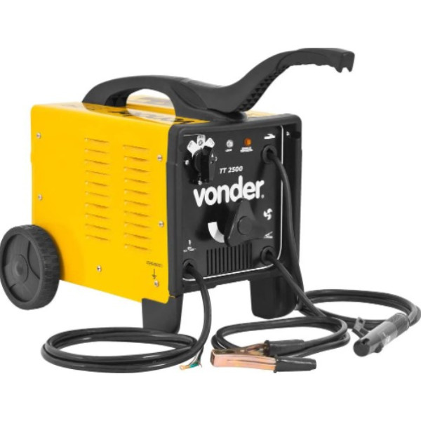 Possui sensor de temperatura, ventoinha para melhor refrigeração, rodas que facilitam a movimentação, chave para troca fácil da tensão (127 V~/220 V~) e acompanha cabos, garra obra e porta-eletrodo. Máquina pronta para uso.