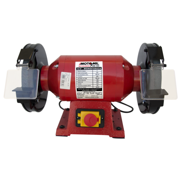 O Moto esmeril possui baixo nível de ruído, base em ferro fundido e suporte de afiação ajustável. É equipado com botão de segurança junto com a chave liga/ desliga, proporcionado segurança ao operador. Utilizado para desbastar, afiar e dar acabamento.