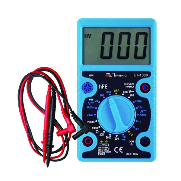Indicado para medições de tensão DC e AC, corrente DC (máximo 10 A), resistência, testes de diodo, continuidade e transistor