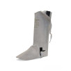 Perneira de segurança confeccionada em raspa, fechamento em velcro, tira em raspa e fivela plástica na parte superior para ajustes.