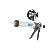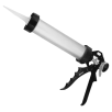 Pistola (Aplicador) de silicone, tipo fechado, 9 polegadas, Plus, super reforçada, partes em aço forjado e temperado, empunhadura e gatilho em alumínio, corpo em tubo de alumínio, pintura eletrostática, comprimento 44 cm., com êmbolo central de aço 4 mm de diâmetro, para sachês de silicone de 300g 305 ml 230mm, para aplicação de massa de silicone ou poliuretano.