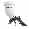 Pistola de pintura pneumática com tanque alto e alimentação por gravidade é indicada para aplicação protetora em diversas superfícies, como: plástico, metal, madeira e cerâmica. Produzida em liga de alumínio fundido, conta com sistema de regulação, circulação de ar e pressão. Ideal para a realização de trabalhos internos e externos, em oficinas de reparação de automóveis.
