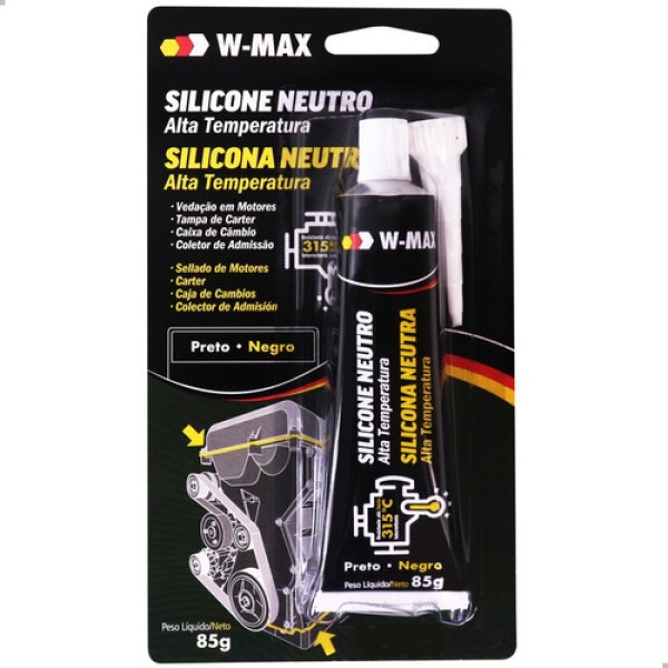 O Silicone Neutro Alta Temperatura W-MAX é um silicone de cura neutra monocomponente formador de juntas para as mais diversas aplicações na área mecânica. Alta flexibilidade e resistência à temperatura, sendo estável para trabalhos constantes em até 315 ºC, com picos curtos de 365 ºC. Produto de cura neutra, não oxida sensores e partes internas dos componentes onde é utilizado. Cura à temperatura ambiente e forma uma junta de silicone flexível e resistente, substituindo as juntas convencionais.